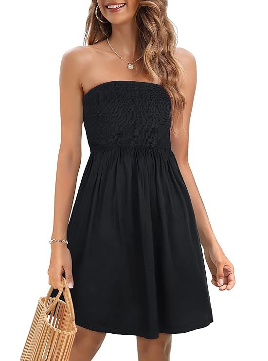 • Swimsuit strapless outfit has two ways to get dressed, you can wear it as the short tube top Sundresses women, or you can wear it as the long smocked skirt with the T-shirt or crop top.
